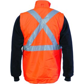 Seam-sealed, waterproof shell. Reversible polar fleece inner. Clear id, phone and pen pockets. Crossback generic reflective tape. Polar fleece zip off sleeve converts to reversible vest. Hidden zip access to 3993 or 3995 converts into “6 in 1” jacket. Embroidery access. Reversed side: 100% Polyester polar fleece